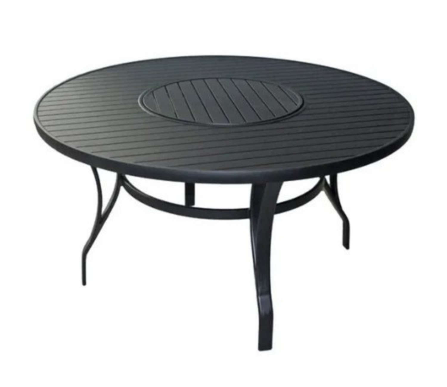 Material: Estrutura em alumínio com pintura eletrostática. Tampo e centro giratório ripado.