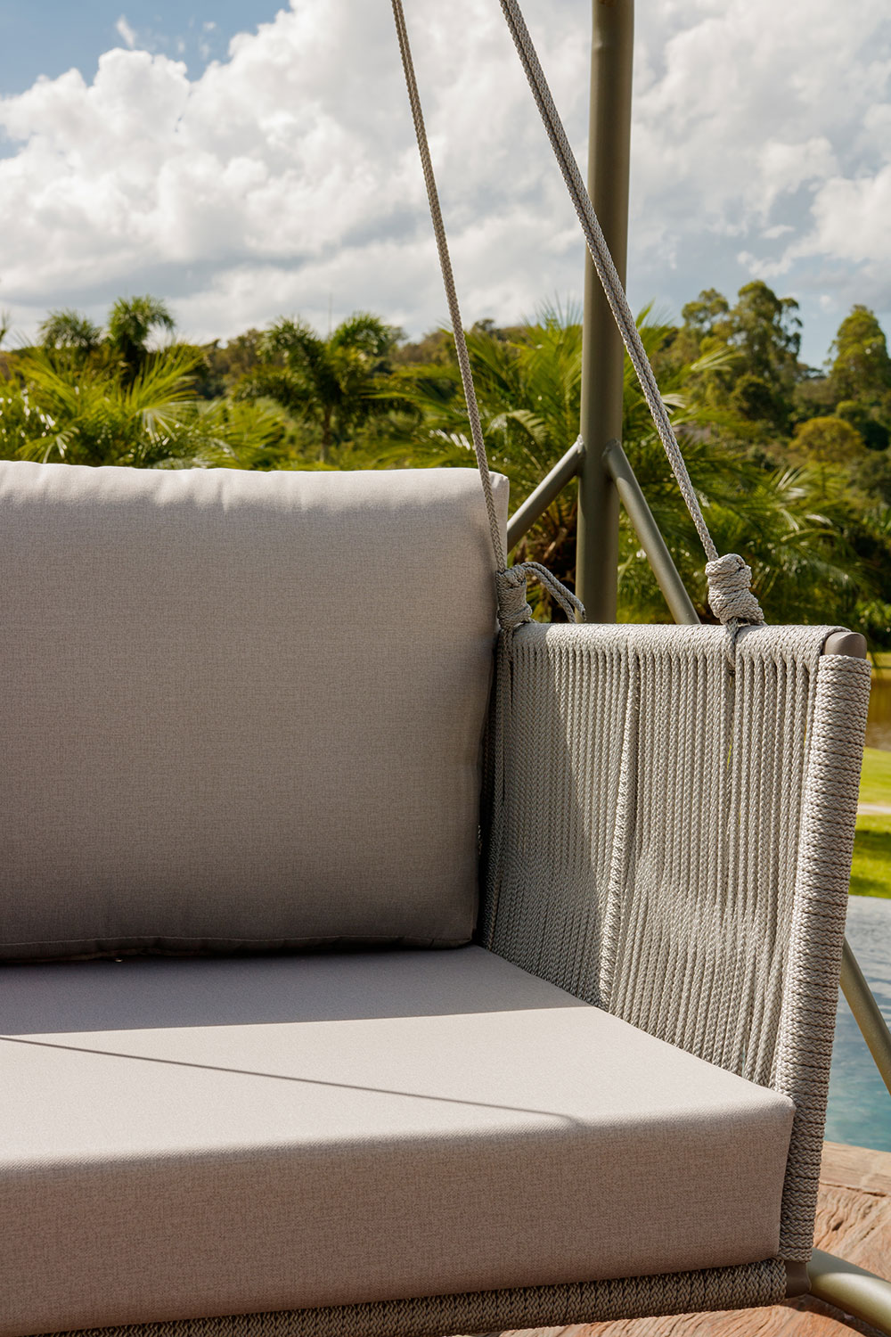 Material: Estrutura em alumínio com pintura eletrostática, revestido com corda náutica ou fibra sintética, com proteção UV.