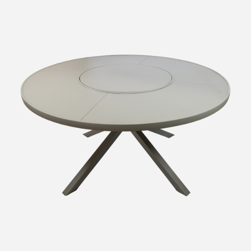 Material: Estrutura em alumínio com pintura eletrostática. Tampo e centro giratório em chapa.