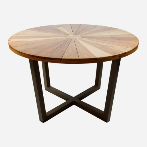 Material: Estrutura em alumínio com pintura eletrostática. Tampo radial em madeira maciça.